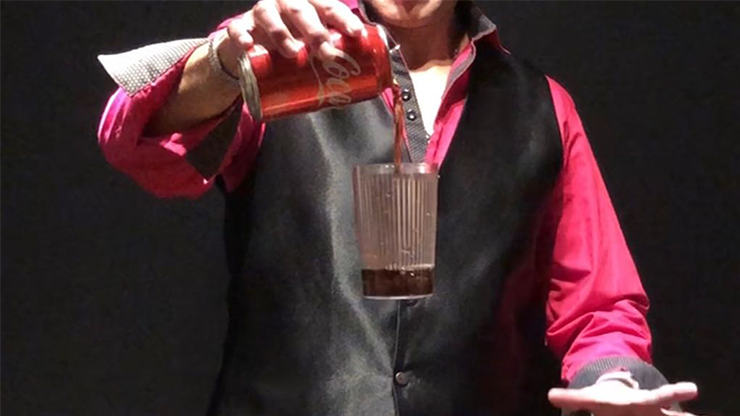 You receive the glass with everything prepared for you, the universal gimmick for bottles and a trick can of soda with a gimmick. You can easily change it for any can you wish to use.